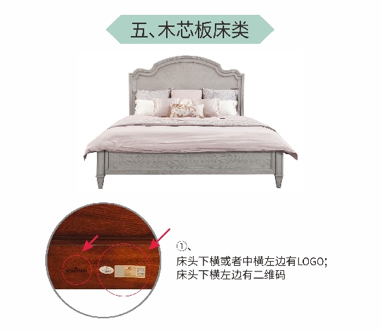 (1)床頭下橫或者中橫左邊有LOGO; 床頭下橫左邊有防偽碼。
